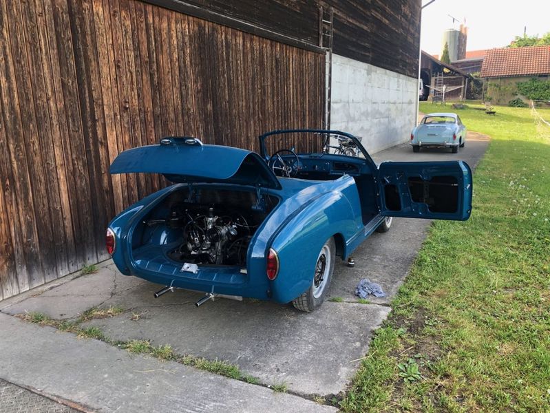 Also wieder alles zerlegen, Häuschen weg und zum Spengler. Motor revidiert, Elektrik alles neu, Interieur komplett neu aufgebaut, diesmal in Echtleder und mit hochwertigem Teppich.